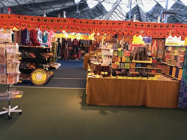 Wij staan dan achter in de hoek v/d 2e Hal, tegenover de 4 Restaurants bij het grote podium.